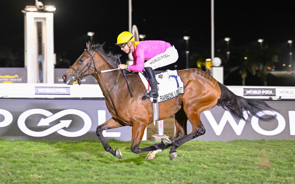 RAINBOW LORIKEETTammi Eastland2025-08-04T10:14:59+02:00 Runs: 22 Wins: 7 Places: 9 Merit Rating: 113 Age: 5 Sex: Mare Colour: Bay Breeder: Wilgerbosdrift & MauritzfonteinBloodline: By: Querari (GER) Out Of: Nightingale By: Silvano (GER)Owner: Yuppie Syndicate (Nom: Mr Z M Bloch)MORE HORSES IN TRAININGAIR RAIDTammi Eastland2025-06-23T15:28:20+02:00 AIR RAID AIR RAID ALL THE RAGETammi Eastland2025-08-04T10:09:26+02:00 ALL THE RAGE ALL THE RAGE AMEN CORNERTammi Eastland2025-03-06T19:08:25+02:00 AMEN CORNER AMEN CORNER ASTRONOMICAL BOYTammi Eastland2025-09-15T10:20:47+02:00 ASTRONOMICAL BOY ASTRONOMICAL BOY BABELICIOUSTammi Eastland2025-05-25T13:26:08+02:00 BABELICIOUS BABELICIOUS BEACH VERSETammi Eastland2025-09-02T13:02:39+02:00 BEACH VERSE BEACH VERSE BOUNDLESS ENERGYTammi Eastland2024-10-13T13:08:25+02:00 BOUNDLESS ENERGY BOUNDLESS ENERGY BRIGHT GOLDTammi Eastland2025-02-16T20:00:29+02:00 BRIGHT GOLD BRIGHT GOLD CALLMEGETRIXTammi Eastland2025-02-12T19:20:56+02:00 CALLMEGETRIX CALLMEGETRIX CAPTAIN ARROWTammi Eastland2024-10-13T13:03:49+02:00 CAPTAIN ARROW CAPTAIN ARROW CHARLIE CROKERTammi Eastland2023-03-06T09:50:49+02:00 CHARLIE CROKER CHARLIE CROKER CHURCHILLIANTammi Eastland2025-05-25T13:36:22+02:00 CHURCHILLIAN CHURCHILLIAN CLIFFSCAPETammi Eastland2025-05-25T13:51:52+02:00 CLIFFSCAPE CLIFFSCAPE COULDITBETammi Eastland2024-05-26T15:36:41+02:00 COULDITBE COULDITBE COUNTER ATTACKTammi Eastland2024-02-09T07:05:15+02:00 COUNTER ATTACK COUNTER ATTACK Share This Story, Choose Your Platform! FacebookXLinkedInWhatsAppTumblrPinterestEmail